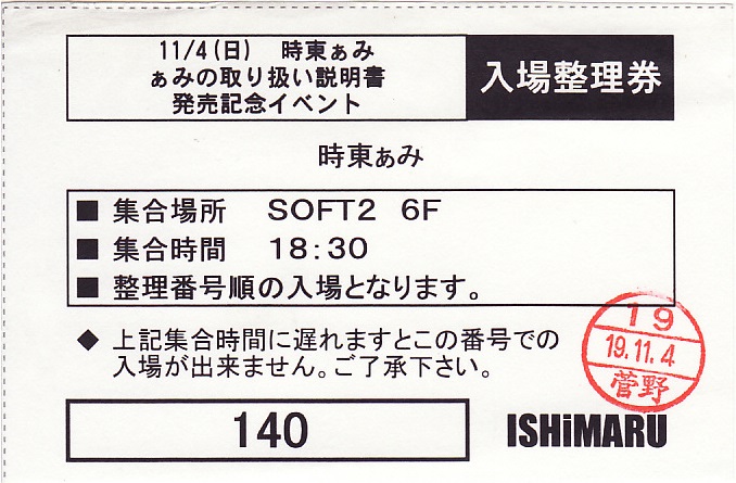 時東ぁみ『ぁみの取扱い説明書(トリセツ)』発売記念イベント入場整理券