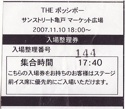 2007.11.10 THE ポッシボー「HAPPY15」発売記念イベント入場整理券