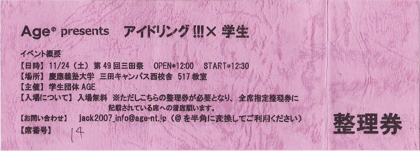 Age presents「アイドリング!!!×学生」整理券&チラシ