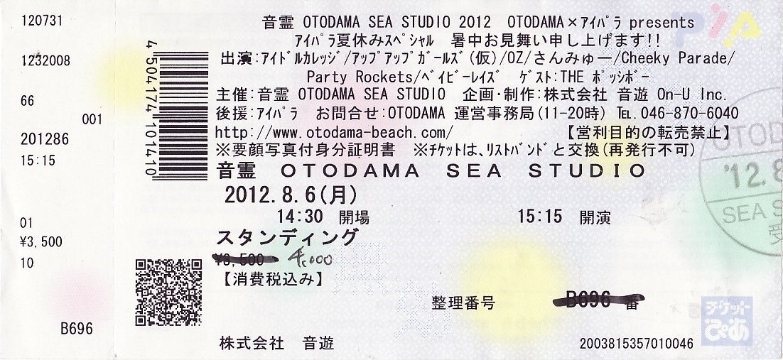 音霊2012「アイパラ夏休みスペシャル」チケット半券
