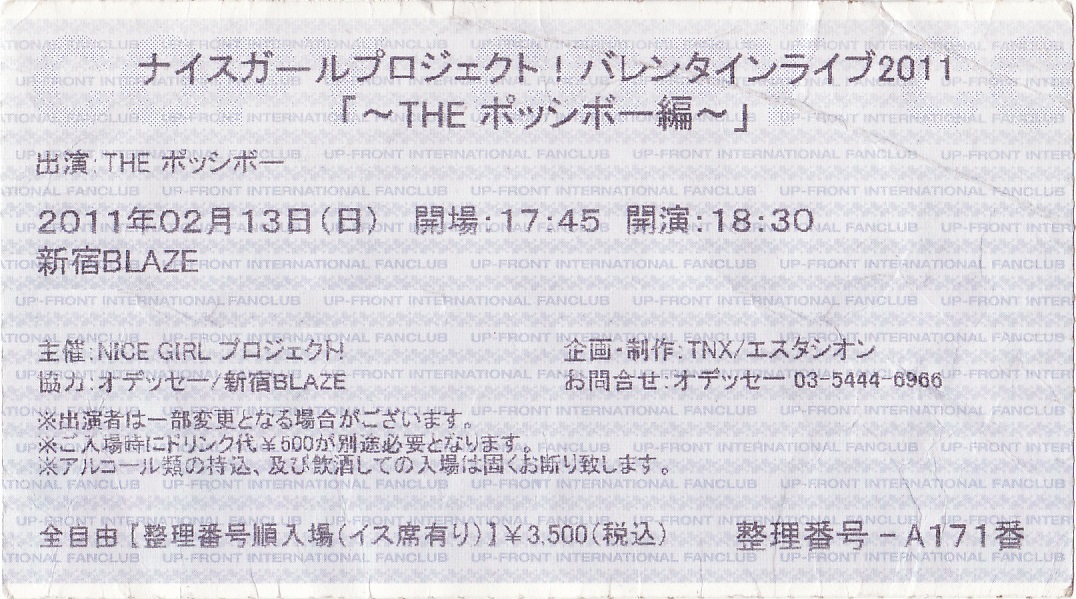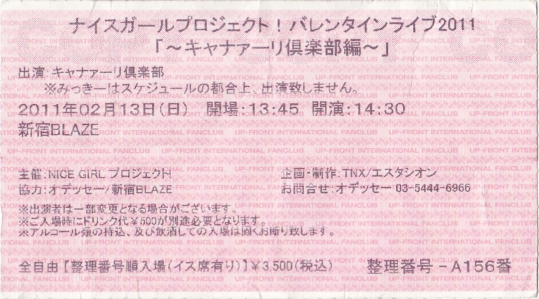 NICE GIRL プロジェクト!「バレンタインライブ2011」チケット半券