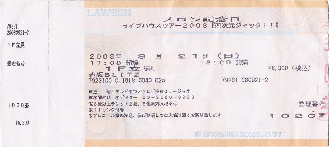 メロン記念日ライブ2008「四次元ジャック!!」チケット半券