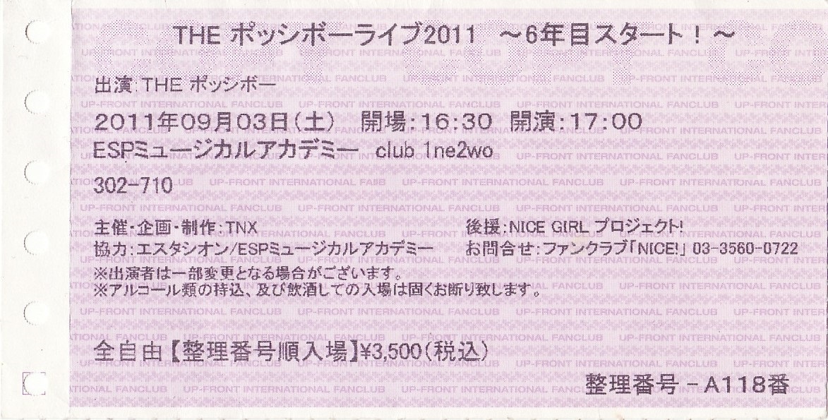 THE ポッシボーライブ2011 ~6年目スタート~チケット半券