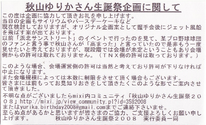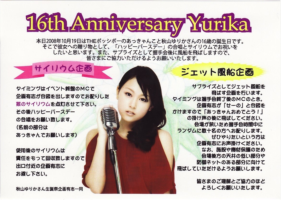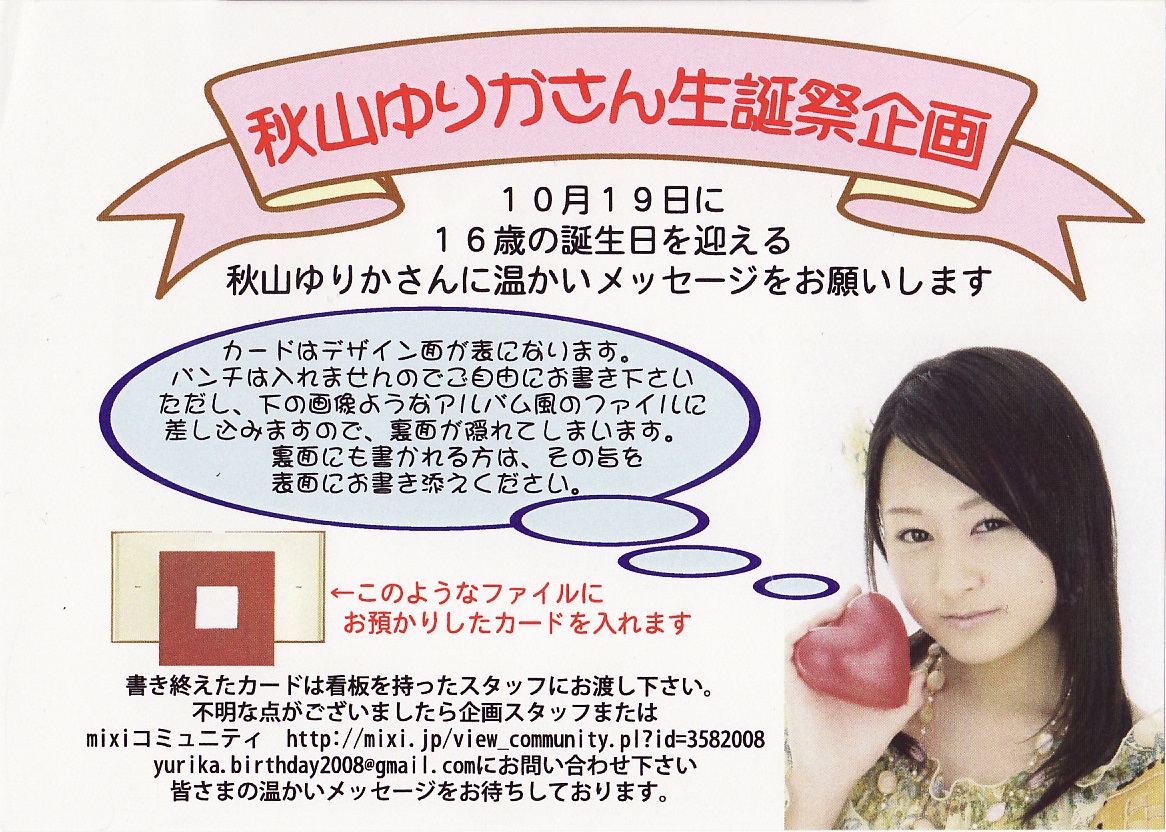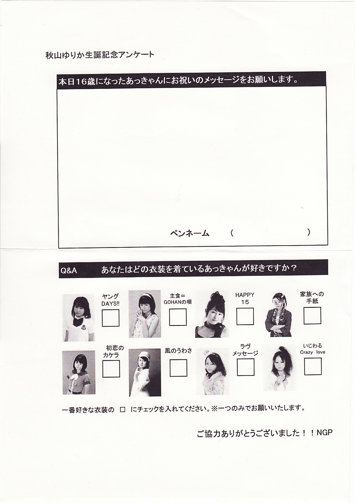 秋山ゆりか生誕記念アンケート(事務所配布)