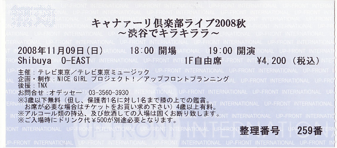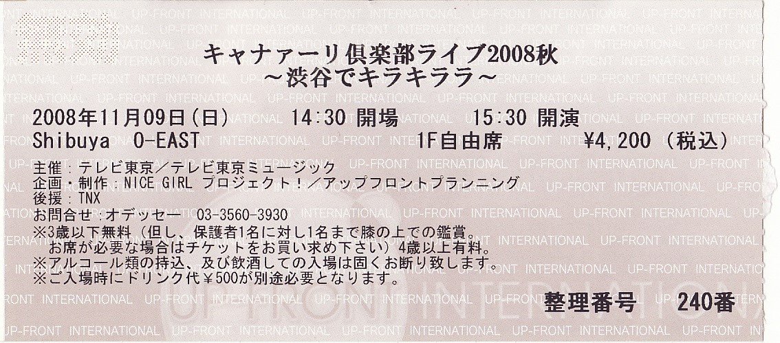 キャナァーリ倶楽部 2008秋~渋谷でキラキララ~チケット半券&小川真奈「スッピンロック」予約CD引換券