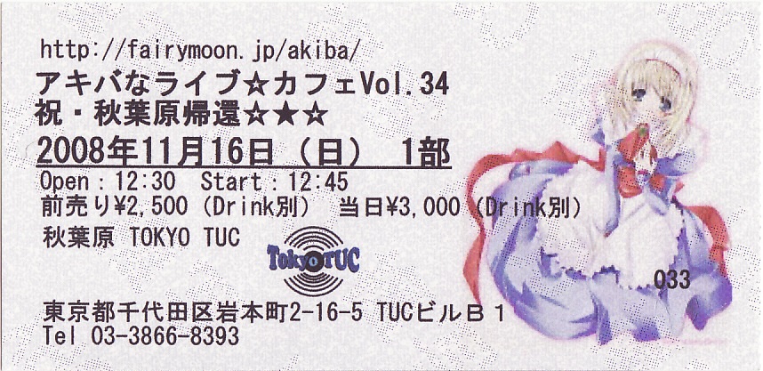 アキバなライブ☆カフェ~Vol.34 祝!!秋葉原帰還☆★☆チケット半券