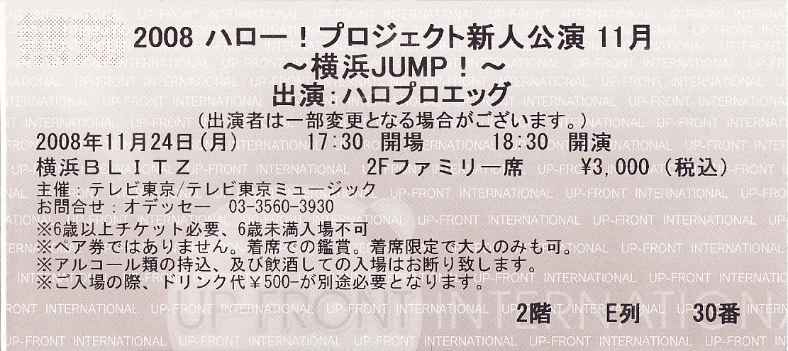 2008 ハロー!プロジェクト新人公演 11月~横浜JUMP!~チケット半券