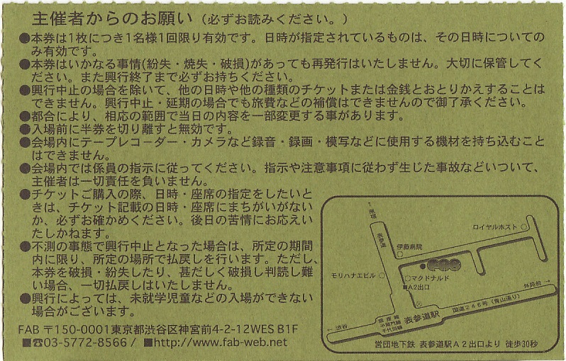 表参道FAB「RING×RING×RING vol.9」チケット半券