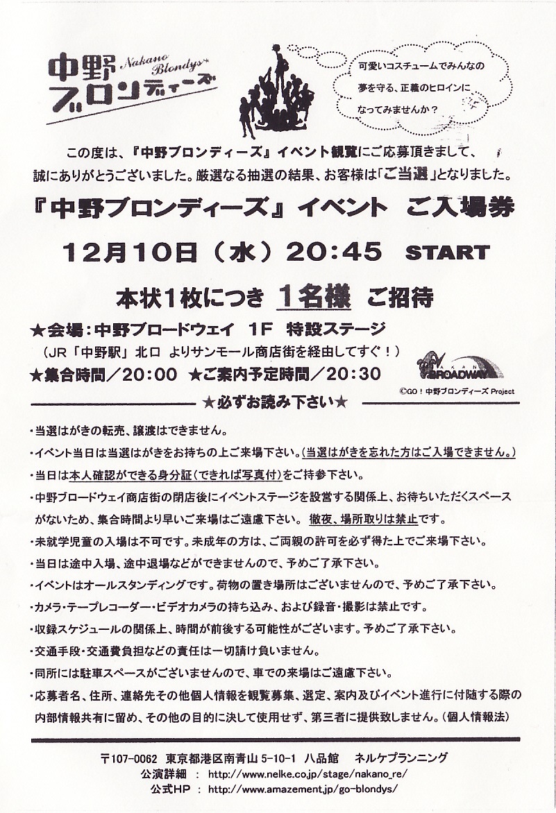 舞台「中野ブロンディーズ」イベント観覧招待券