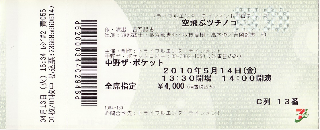 舞台「空飛ぶツチノコ」チケット半券