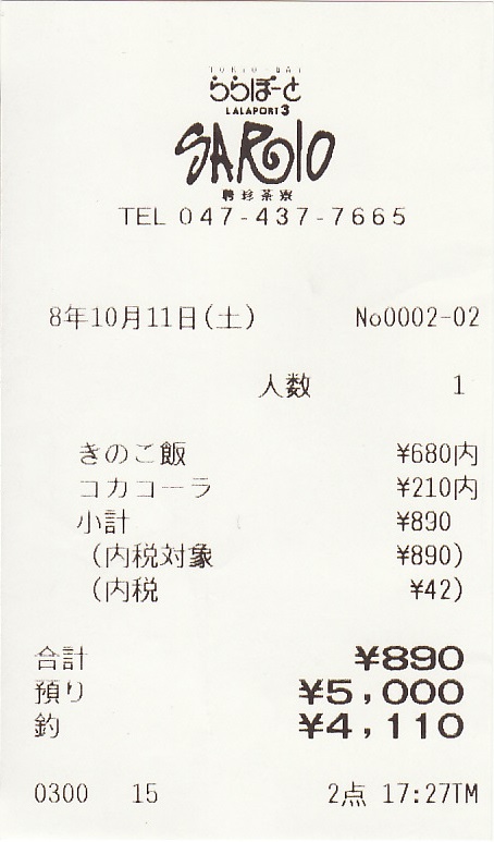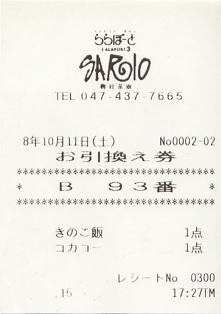 SARIO 聘珍茶寮 ららぽーとTOKYO-BAY店 レシート