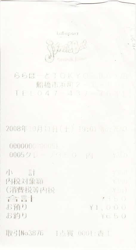/J-Fresh Bar(ジェイフレッシュバー)ららぽーとTOKYO-BAY店 レシート