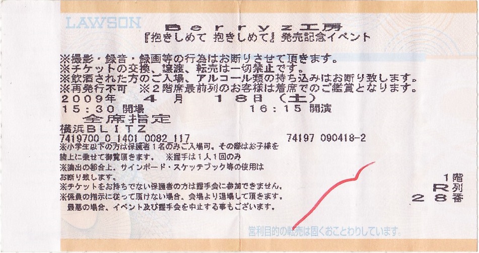 Berryz工房「抱きしめて 抱きしめて」発売記念イベント チケット半券