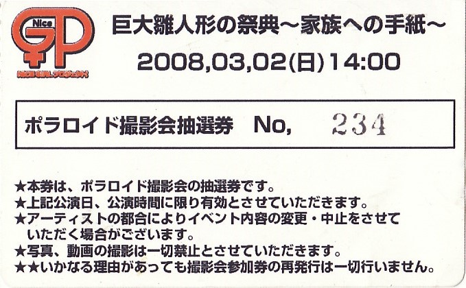 NGP「巨大雛人形の祭典~家族への手紙~」ポラロイド撮影会抽券