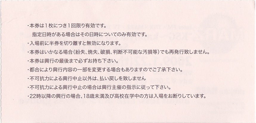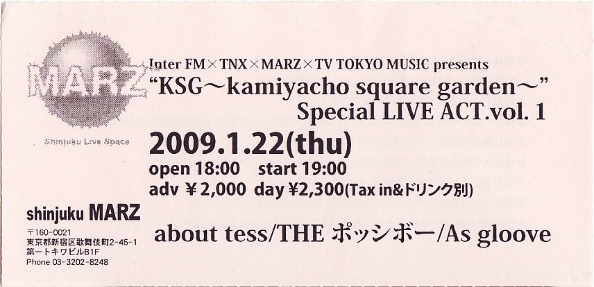 “KSG~kamiyacho square garden~”Special LIVE ACT. vol.1チケット半券&かりふわ堂レシート