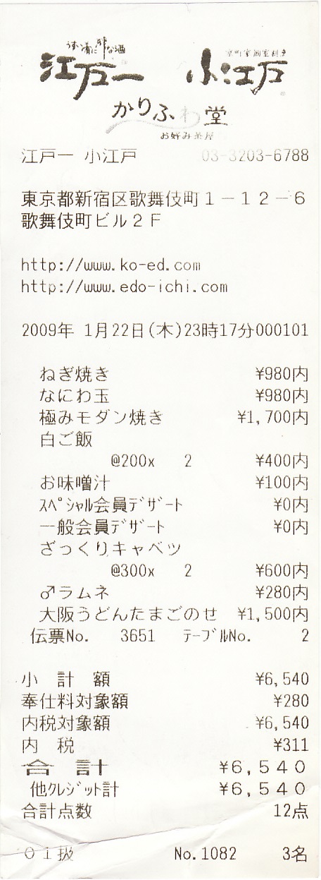 お好み茶屋 かりふわ堂 新宿店 レシート