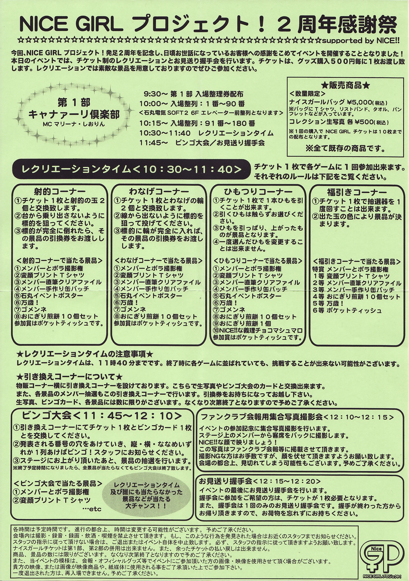 ・オフィシャルグッズを500円購入毎に、NICE GIRLチケットを1枚配布