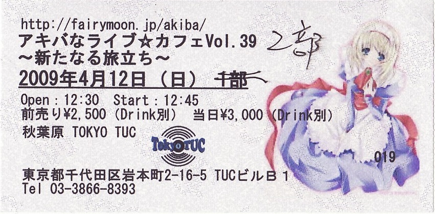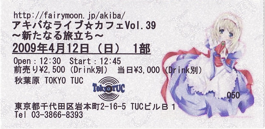 アキバなライブ☆カフェ Vol.39~新たなる旅立ち~チケット半券&チラシ