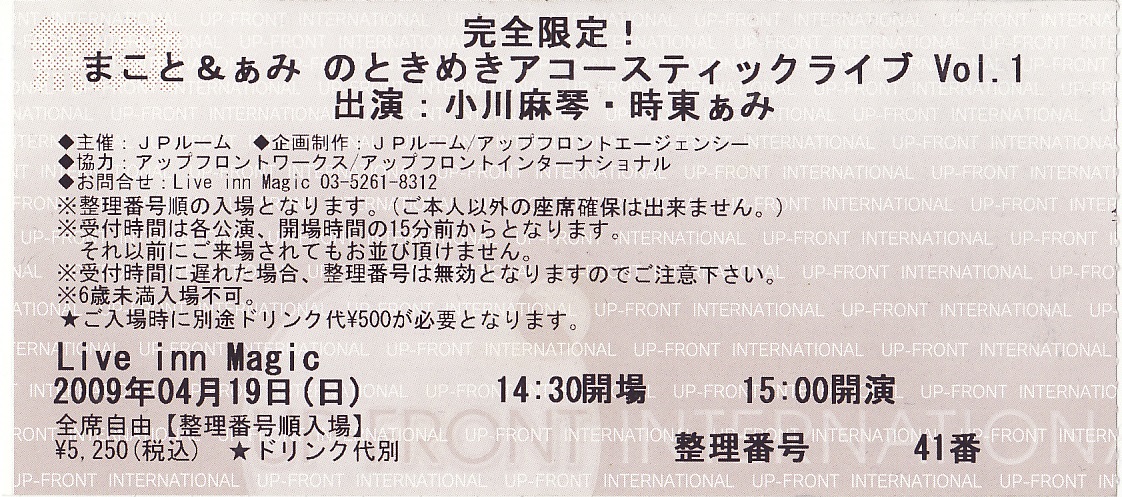 「まこと&ぁみのときめきアコースティックライブ Vol.1」チケット半券