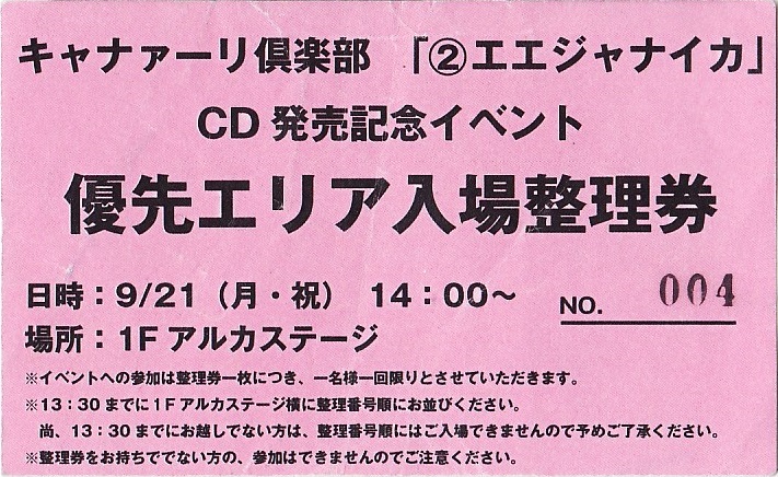 2009.09.21 キャナァーリ倶楽部「②エエジャナイカ」発売記念イベント 優先エリア入場整理券