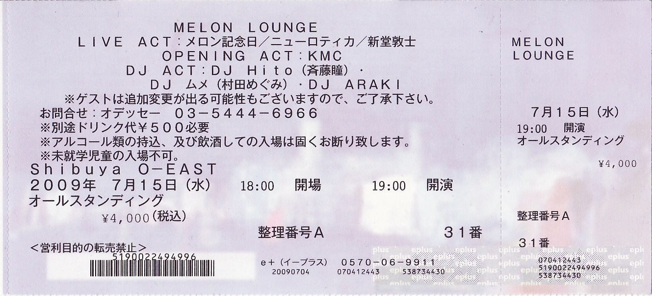 2009.07.15 MELON LOUNGE(メロンラウンジ)未使用チケット