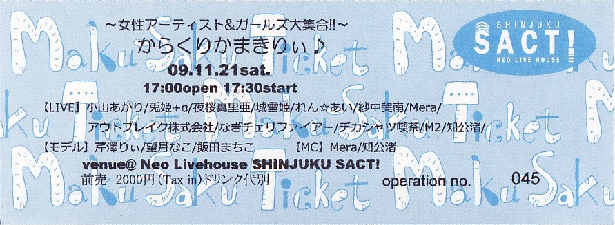 2011.11.21「からくりかまきりぃ♪」チケット半券