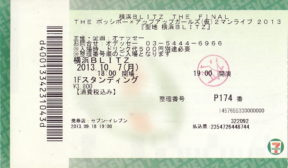 横浜BLITZ「THE ポッシボー × アップアップガールズ(仮) 2マンライブ」チケット半券