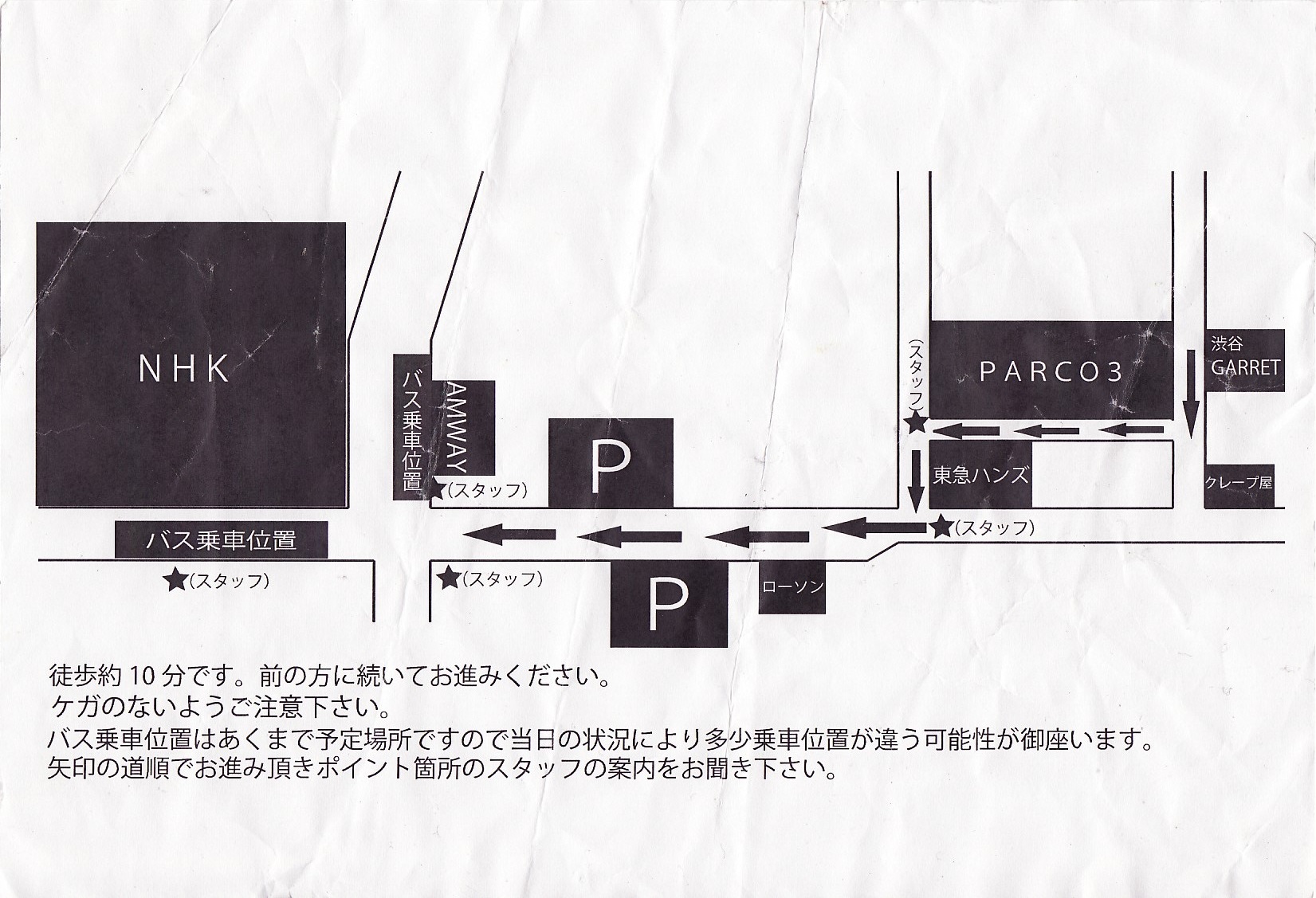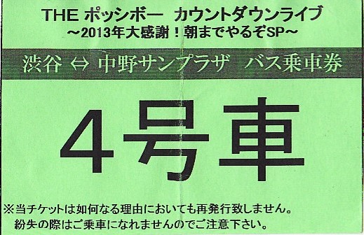 THE ポッシボー カウントダウンライブ「渋谷⇔中野サンプラザ」バス乗車券&バス乗車位置案内チラシ
