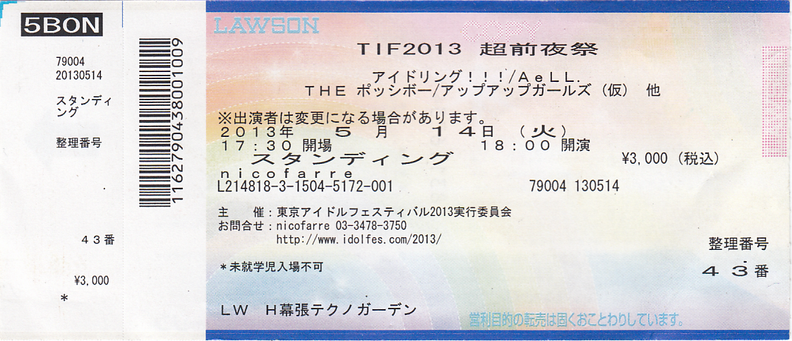 六本木ニコファーレ「TIF2013 超前夜祭」チケット半券