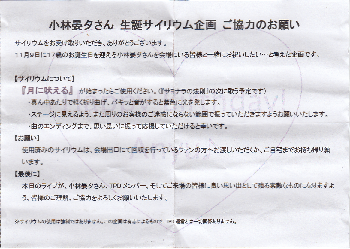 小林晏夕 17才 生誕サイリウム企画 有志配布チラシ