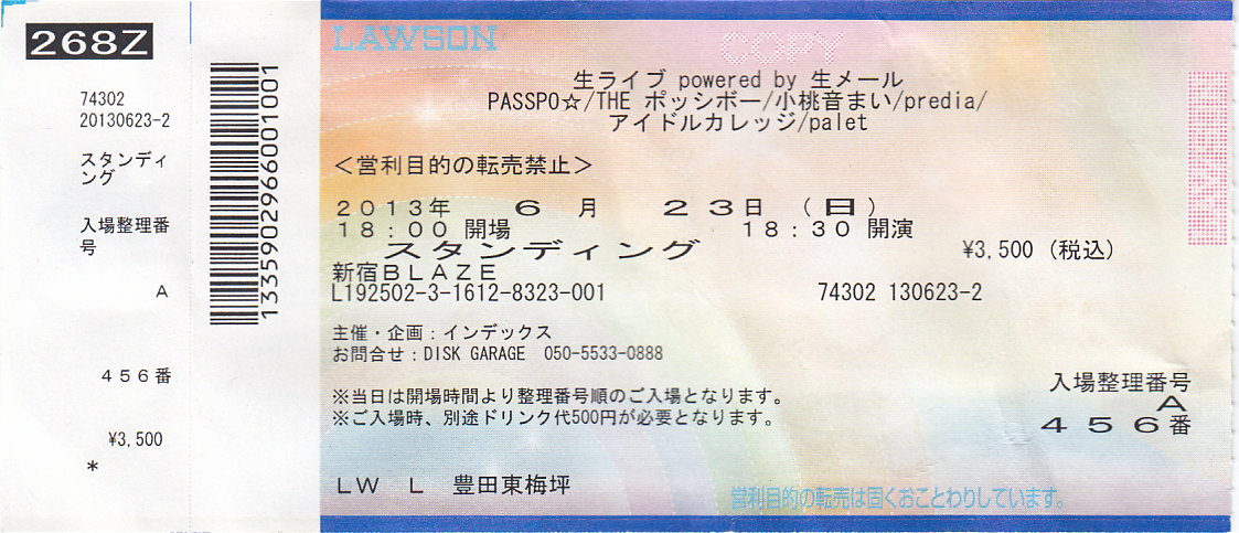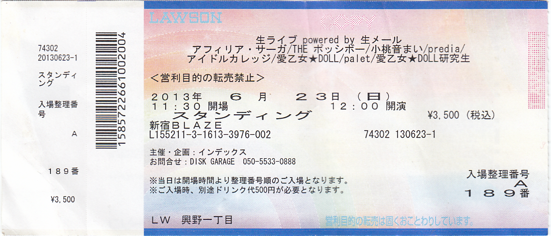 「生ライブ powered by 生メール」@新宿BLAZE チケット半券